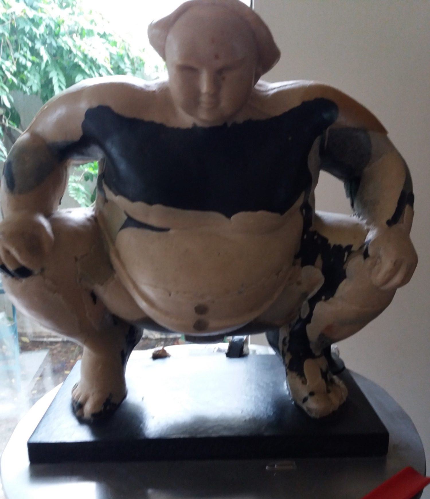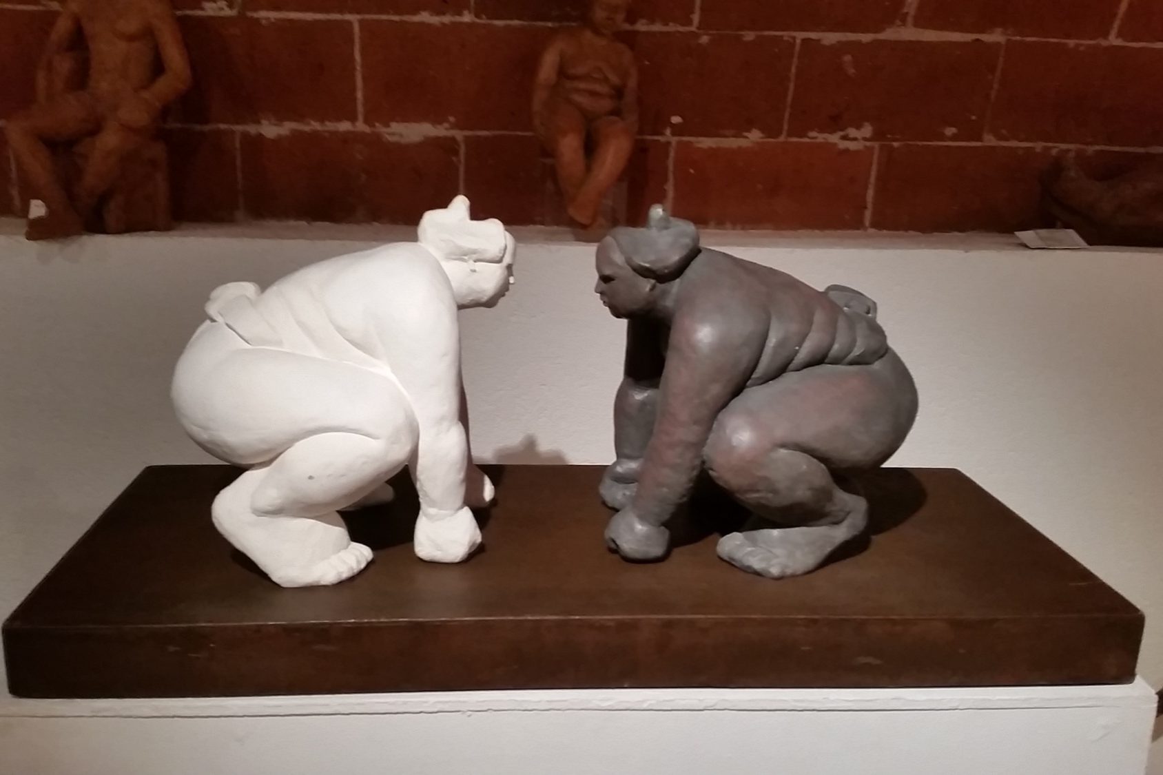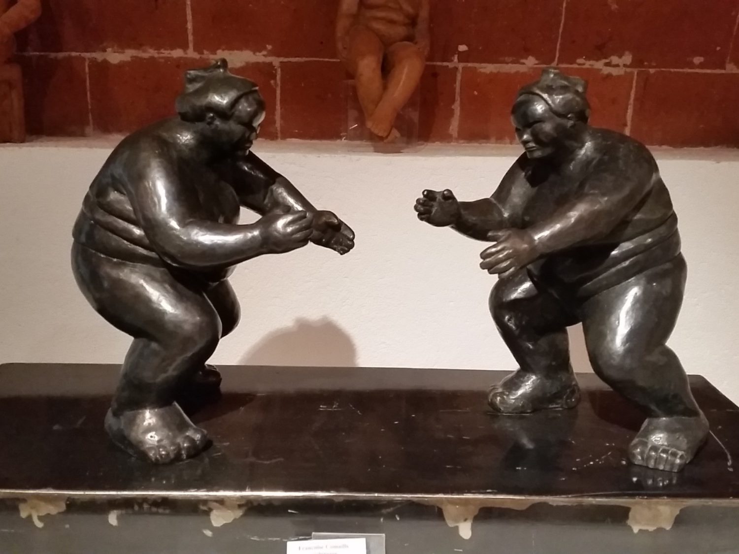 Ici le Combat de Sumo IV, la patine est terminée.En présentation sur un socle en fer rouillé, dans mon atelier-galerie à Mollet de Péralada.ESPAGNE