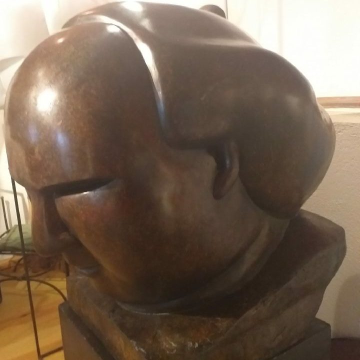 Mon travail sur les Sumo m'a amenée à créer une tête monumentale, ici en bronze, je l'ai crée aussi en résine blanche et en résine lacquée rouge.
