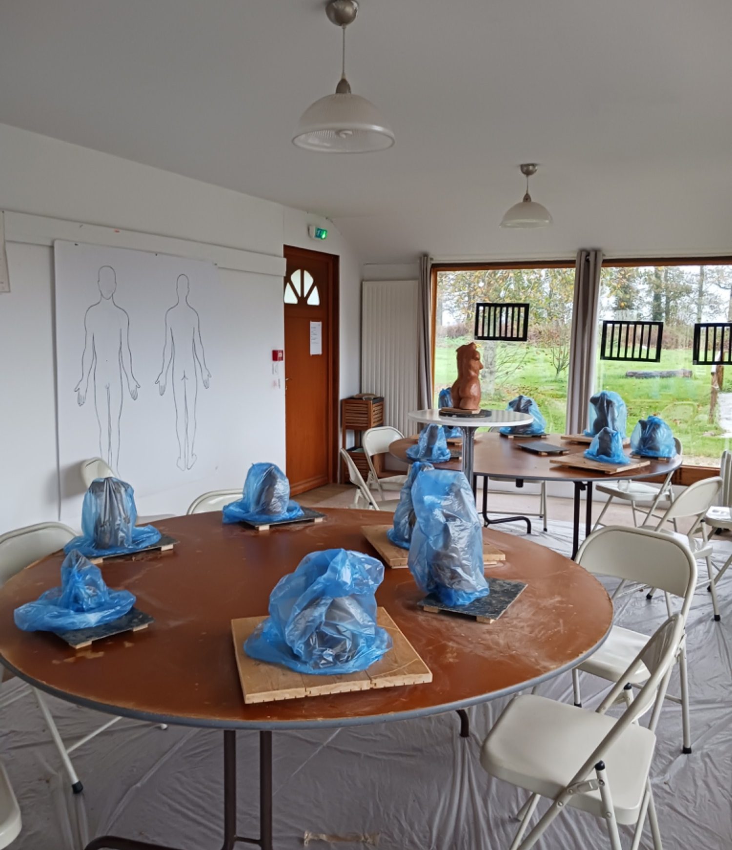 je donne des cours de sculpture durant cette semaine de cure.