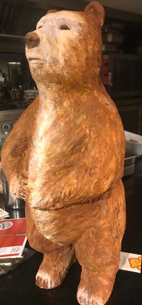 Pourquoi ne pas faire un OURS, peluche qui a habité notre enfance,celui ci n'est pas en peluche mais en terre, ,il pèse son poids car je n'ai comme d'habitude pas vidé ma pièce!
