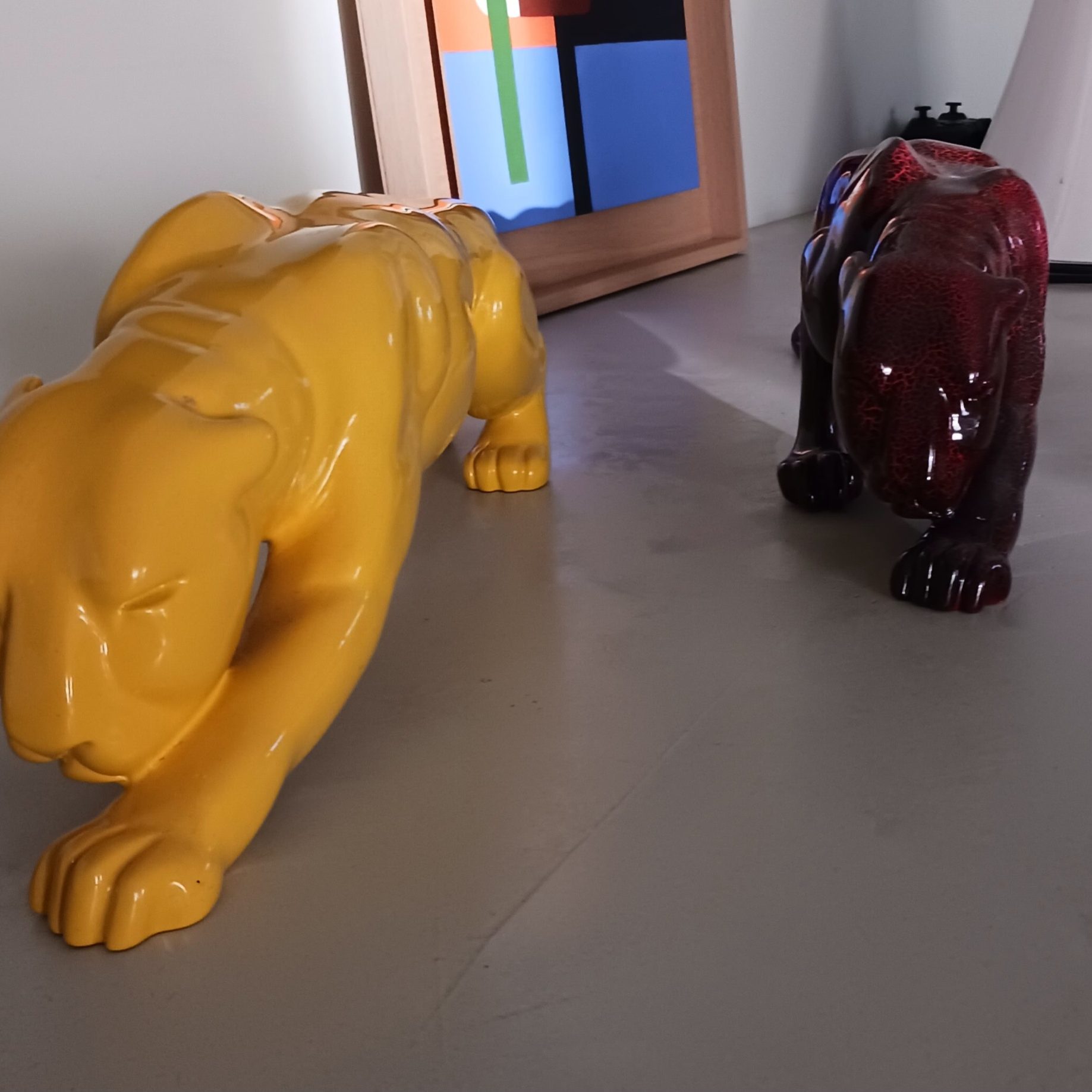 deux panthères, l une jaune, l'autre rouge
