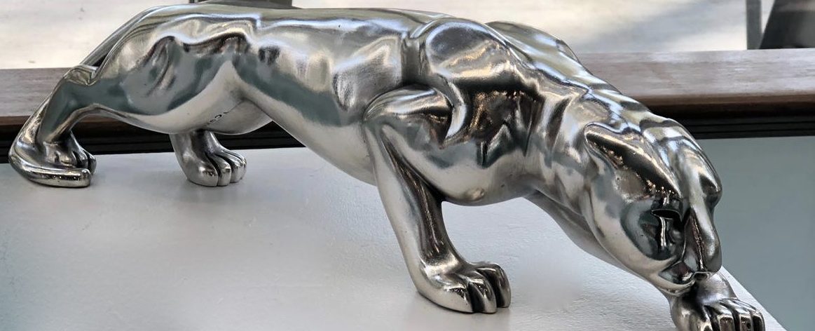 Je travaille soit sur commande, soit à la pulsion, j'adore le travail du sculpteur R. BUGATTI(1884/1916) et m'est venue l'envie de faire des animaux, ici la Panthère, j'ai aussi fait un ours, un escargot, un chien de race Braque Allemand(commande)